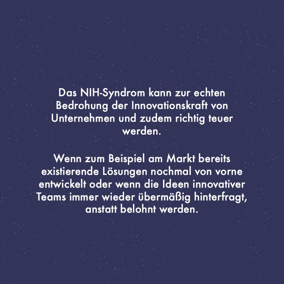 „Um das NIH-Syndrom zu überwinden müssen über die Jahre angeeignete Verhaltensmuster und Einstellungen revidiert werden. Die dadurch ermöglichte Akquisition von externem Wissen führt zu einer Hebung von bisher ungenutzten Potentialen.“ (Lichtenthaler & Ernst)